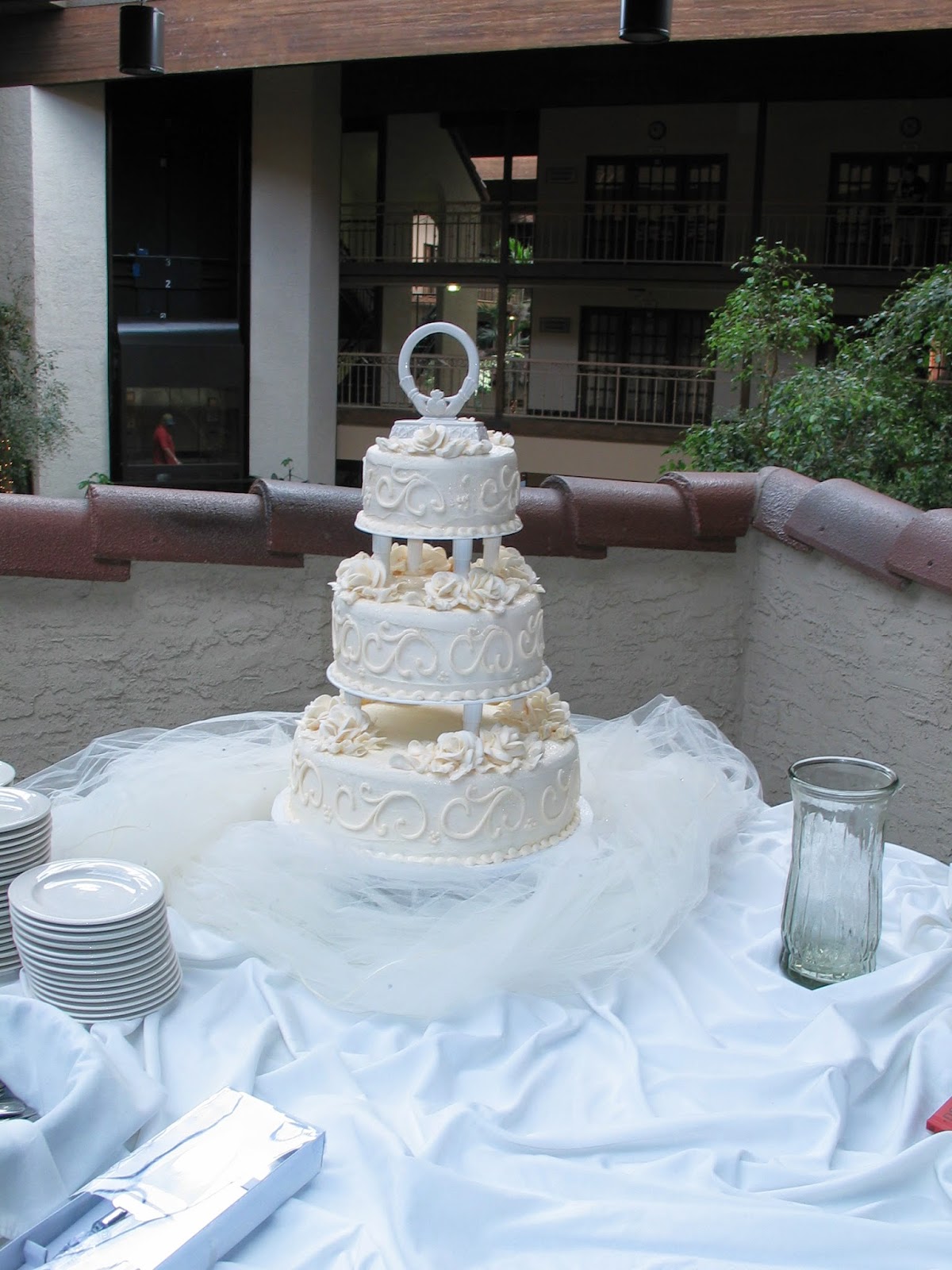 Our cake topper was a china Claddagh with an inscription that fit our philosophy. When we went to look at cake ideas it just freaked out the cake designer when I didn't do all the talking. Noel was a major part of the deal, lol. When we decided the style we wanted and flavor/frosting (red velvet/butter cream with crystallized rain droplets), we showed her an example of how the flowers should look (bloomed-out roses) and I told her there needed to be 9. When she asked how they should be placed, I told her "however you want, as you're the artist." She obviously hadn't ever been given that much leeway and looked at me like I was nuts, lol. I didn't turn all "Bridezilla" until the cake was 15 minutes late, by my determination. Never mind we were having near hurricane weather and it was pouring and blowing a gale outside. The gals that delivered the cake just looked at me and laughed and laughed....